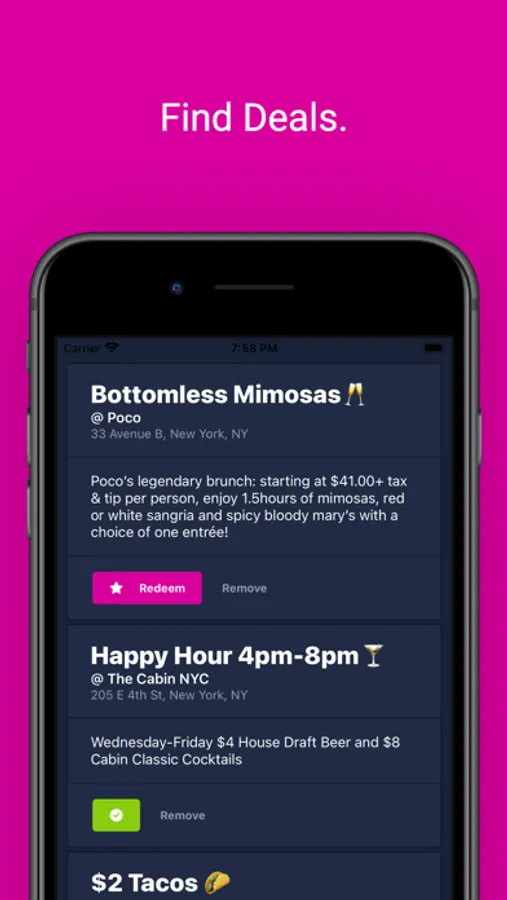 • Find deals and promotions - Restaurants in your area can upload deals or promotions!