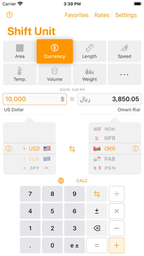 - Built-in numeric keypad (with calculator mode) to enter numbers on either side of the conversion