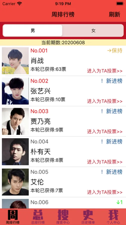 粉丝自己的投票排行榜!给自己喜爱的爱豆投上一票吧!