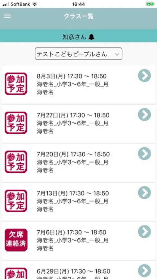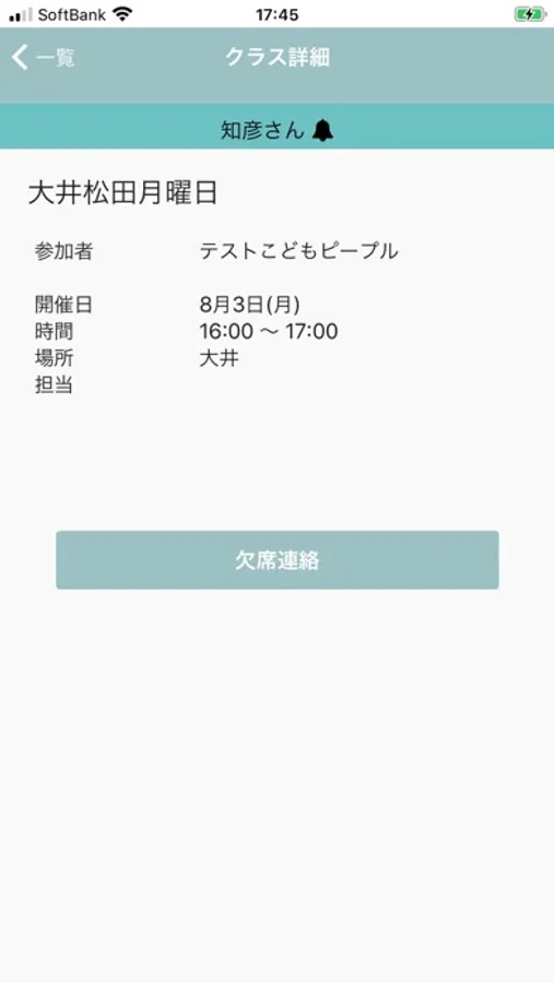 生徒(子供)が通うスクールの参加予定や休校などのスケジュールが一覧で確認できます。また、欠席の連絡をすることが可能です。