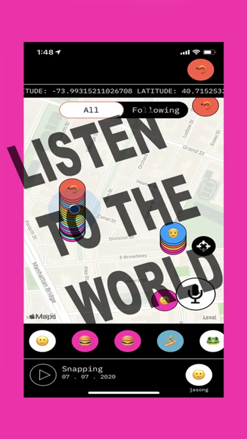 Explore the world with the SOUND MAP APP where you can listen to and record the sounds around you. Build scavenger hunts, audio tours, and narratives using the streets as your venue. Record unique sounds in your area. Place sounds directly for your friends and followers.