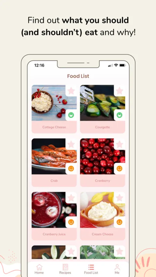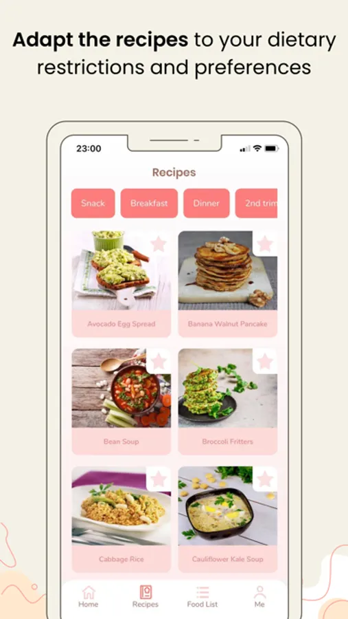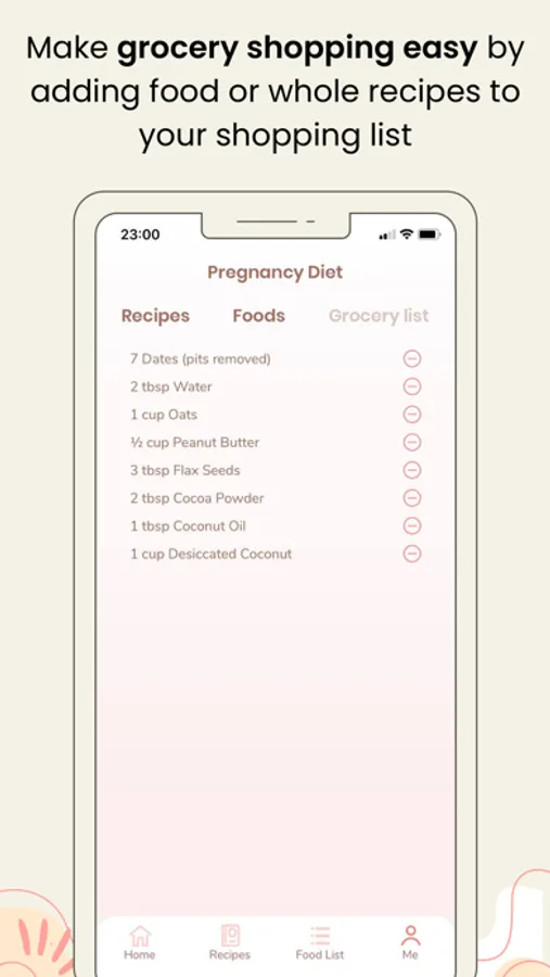 Save healthy recipes for your pregnancy and easily prepare your groceries thanks to our grocery list feature.