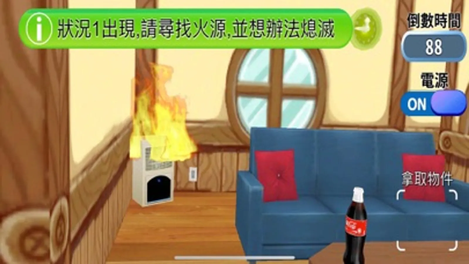 遊戲提供「火災初期滅火」跟「火災逃生」兩種模式,火災種類包括:普通火災、油類火災、電器火災等。