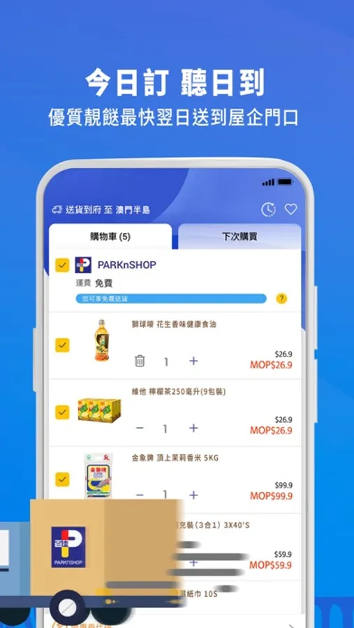 PARKnSHOP Macau App brings you a brand new mobile shopping experience. 10,000+ quality products ranging from groceries, snacks and beverages, personal cares to household and baby cares ready for your delivery to your doorstep at your chosen delivery date and time. Free next day delivery available upon spending a specified purchase amount.