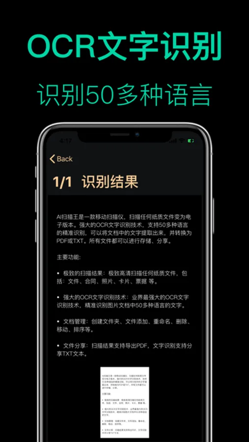 • 文件分享:扫描结果支持导出PDF,文字识别支持分享TXT文本。
