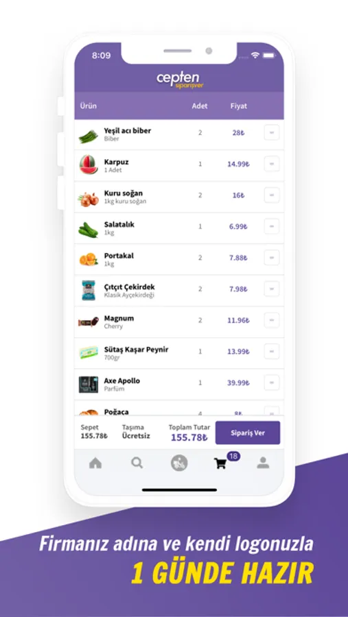 Sizin de böyle bir uygulamaya sahip olmanız için hiç bir sunucu ve donanıma ihtiyacınız yok. Firmanıza ait Logo ve renkler ile tamamen size ait oluşturulmuş online sipariş uygulaması yalnızca bir gün içerisinde hazır.