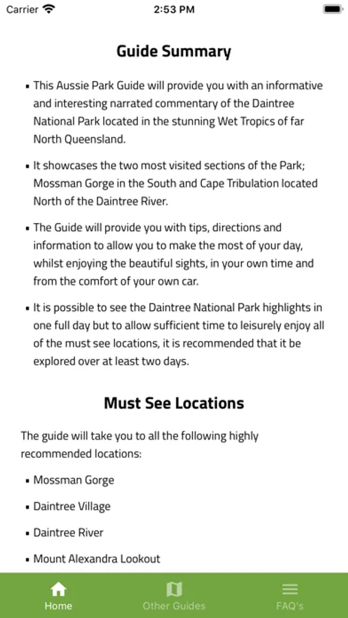 This Aussie Park Guide will provide you with an informative and interesting commentary of the Daintree National Park located in the stunning Wet Tropics of far North Queensland.