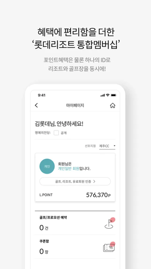 - 롯데리조트 통합멤버십 : L.POINT회원가입, L.POINT 적립/사용, 하나의 L.POINT계정으로 리조트와 골프장 이용