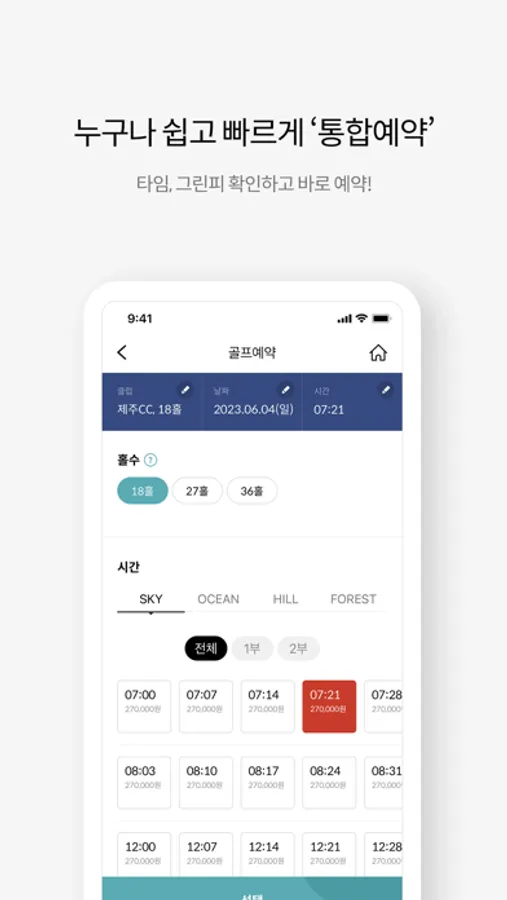 - 예약현황 : 지점별, 날짜별, 코스별 예약가능 Tee-off 타임 확인