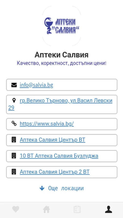 Aптеки „Салвия“ осигурява висококачествени лекарствени продукти, хранителни добавки и козметични изделия, които да спомогнат за подобряване качеството на живот и социалното положение на пациентите в България.