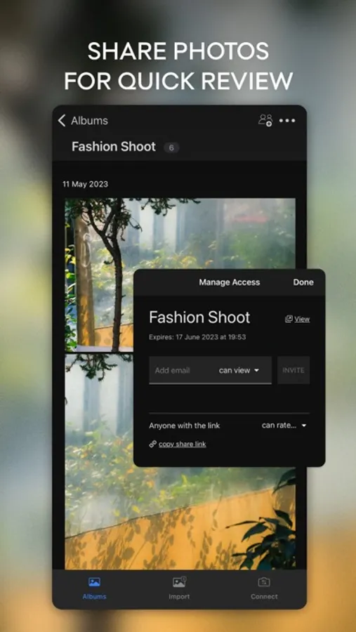 · Get comments, star ratings, and color tags to mark photos for client review and faster editing, while keeping all feedback in one place.