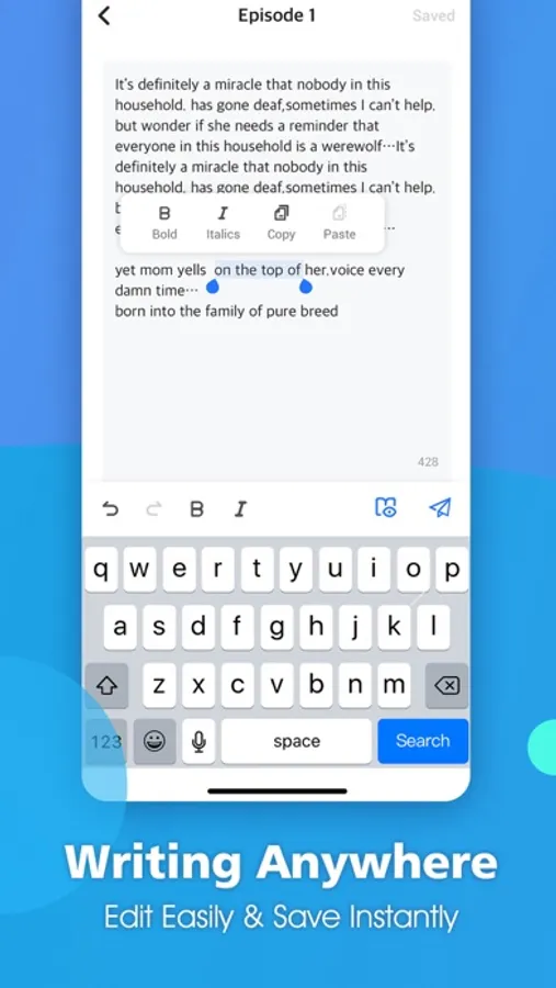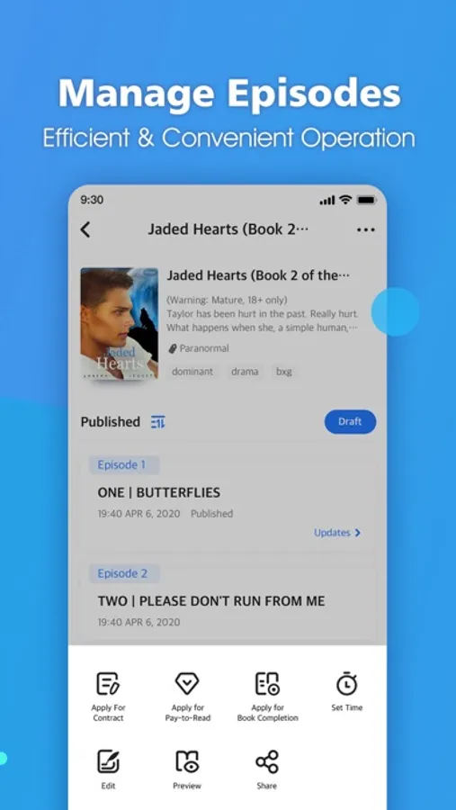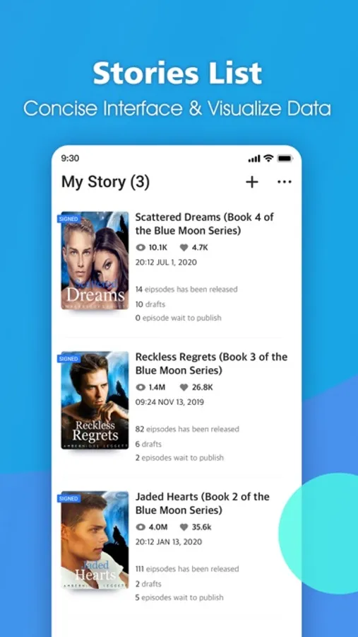 1.Minimal UI designed for writer to easily edit, organize, storage and publish stories
