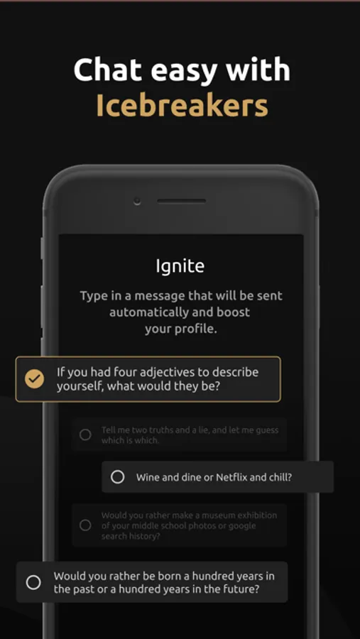 - NEW! Ignite faster matchups with speedy ice-breakers.