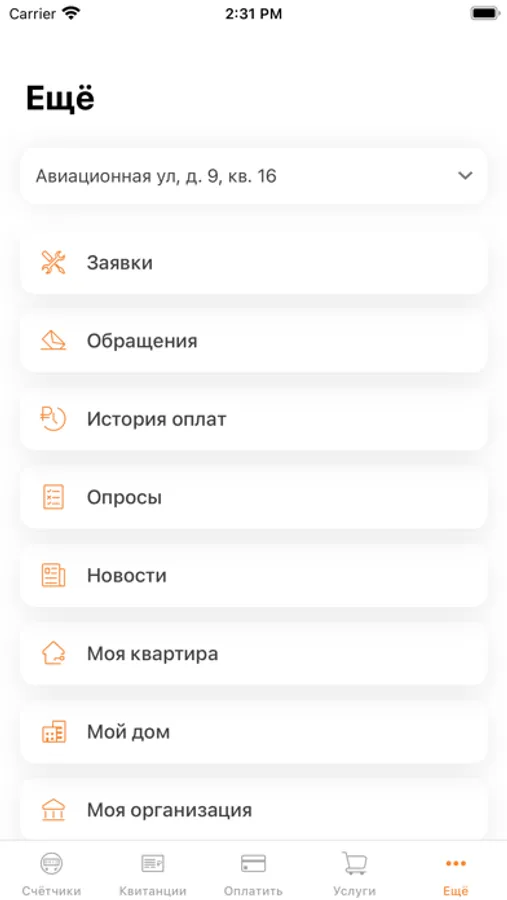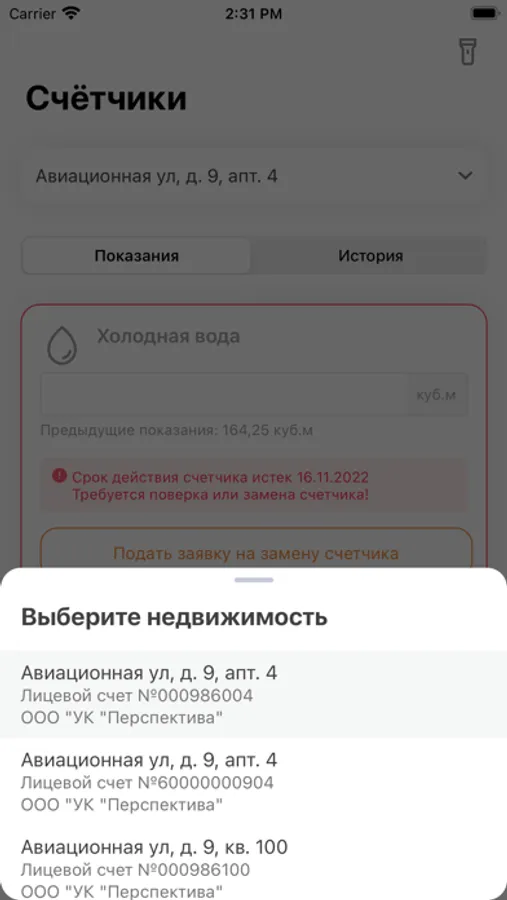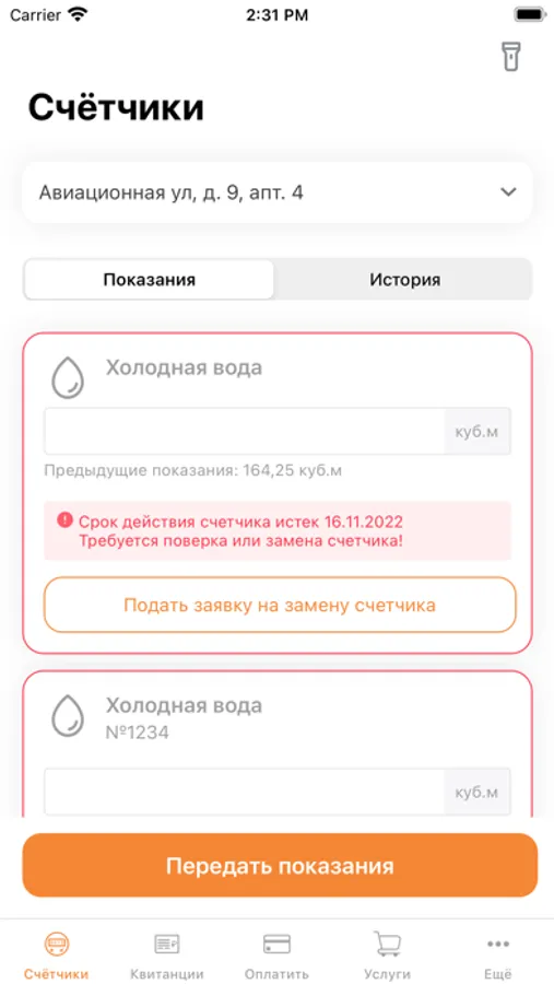 • Подача заявок в аварийно-диспетчерскую службу, отслеживание статуса их выполнения;