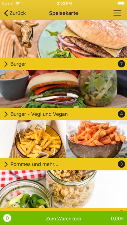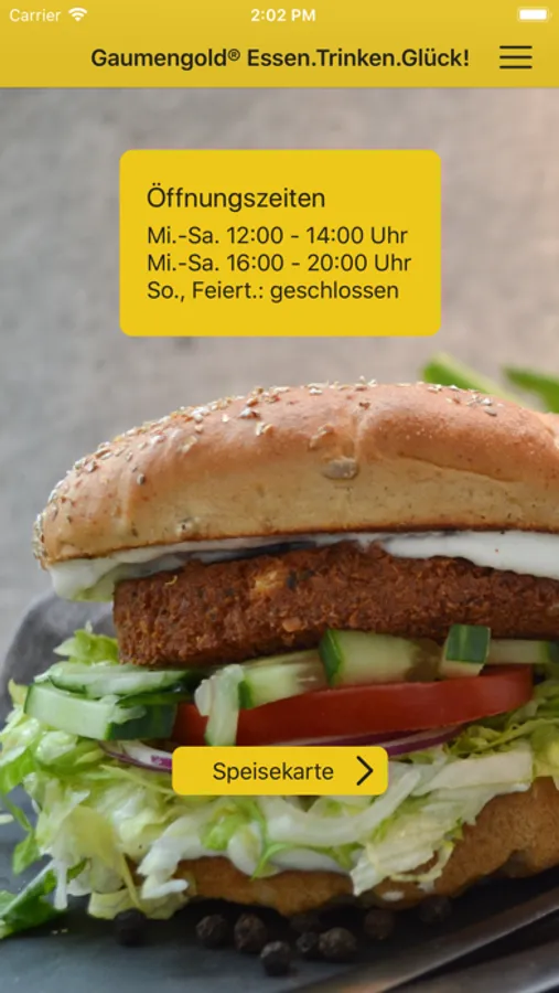Gaumengold® sind Burger in bester Qualität. Dazu gibt es leckere Salate, Pommes, Süßkartoffelpommes oder gar unsere selbstgemachten Falafelbällchen. Du hast die Qual der Wahl zwischen verschiedenen Burgern, die es selbstverständlich immer auch als vegetarische, manchmal sogar als vegane Variante gibt.