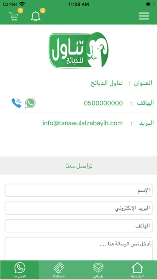 تطبيق تناول الذبائح لبيع كافة انواع اللحوم الطازجه ... يمكنم طلب جميع انواع الذبائح ( النعيمي و النجدي و التيوس و الحري الهرفي و الحاشي ) تحت الاشراف الطبي مع تقطيعه كما ترغب و توصيله الى باب بيتك بسيارات مبرده و باسرع وقت ممكن في كافة مدن المنطقة الشرقيه ( الدمام و الخبر و القطيف و ام الساهك ... الخ) و اختيار نوع التغليف الذي يناسبك ... رضائكم غايتنا ...