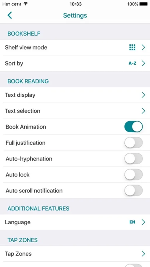 uBooks has 2 types of settings: global settings (located in device’s settings) and local ones and allows you to customize the reading screen: change font type, its color and size, background for day and night modes etc.