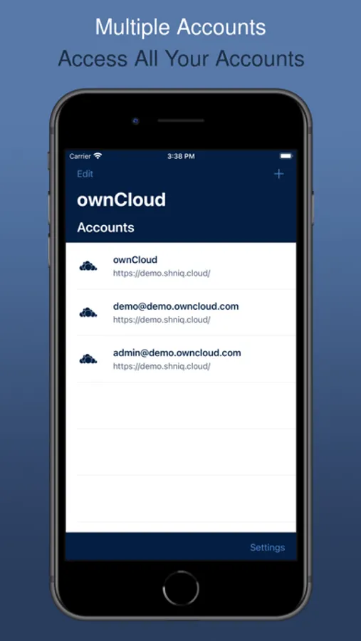 Connect an ownCloud server and have your private file sync and share cloud up and running in no time.