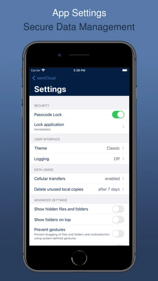 "The new ownCloud app is a complete redesign and not only uses the latest technologies and frameworks under the hood, but offers the user a native and intuitive iOS user interface.