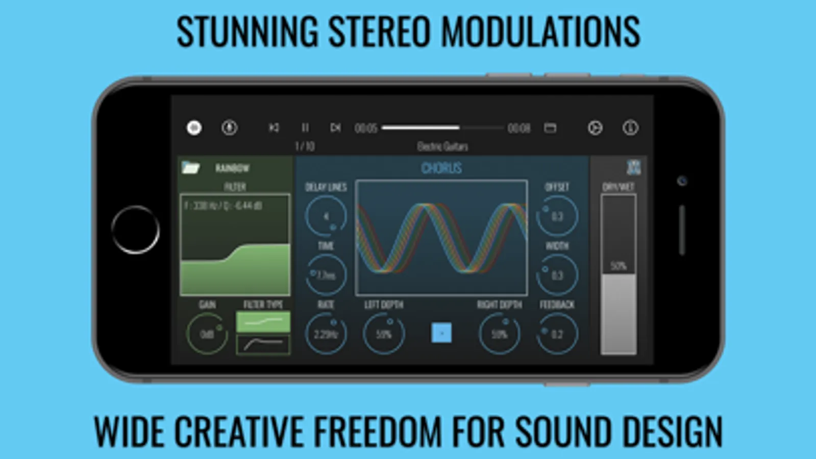 Have full control of the stereo image as well as all effect parameters in a one-screen, clean and responsive interface that goes beyond traditional chorusing, giving more creative freedom to sound designers and music producers.