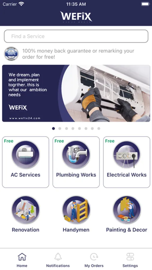 Select the service you need, choose the time you want of our WEFIX team to visit the location, then send us the request and we'll take care of the rest.
