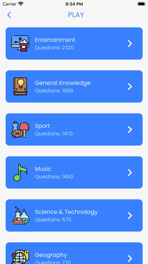 Play quizzes from top trivia topics with thousands of questions.