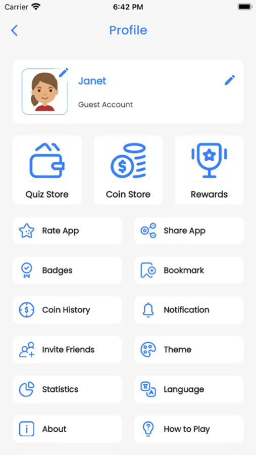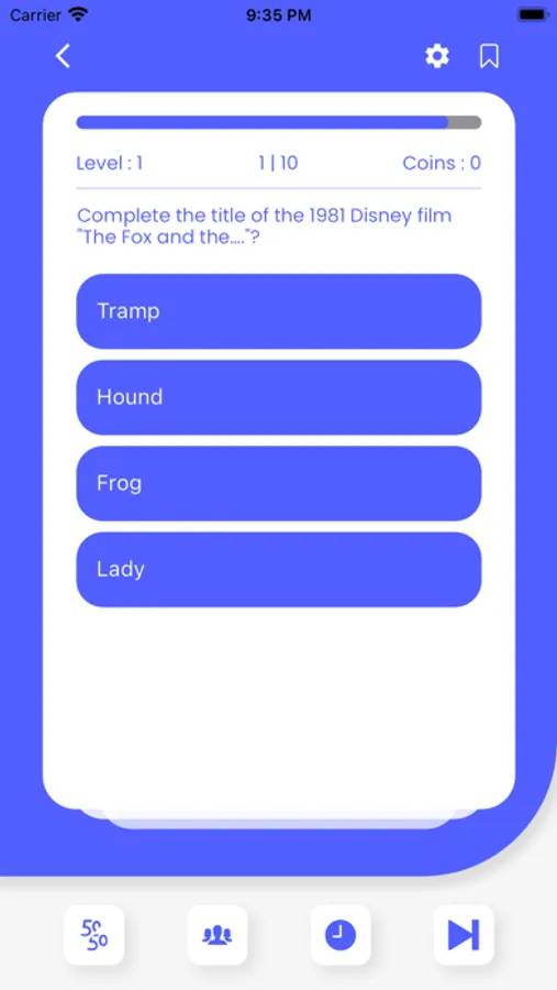- Complete quiz levels to get bonus coins, ranks and awards.