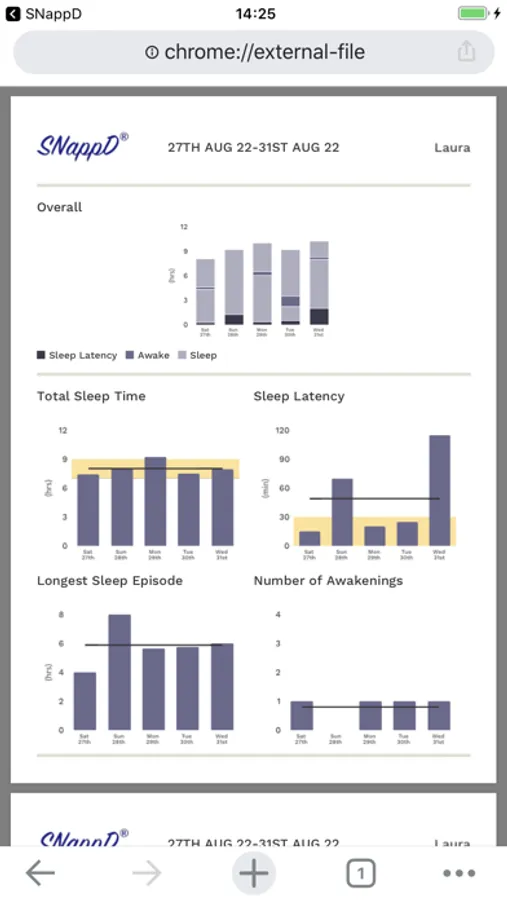SNappD is a simple-to-use sleep and nap diary app that allows sleep statistics, and the impact of poor sleep, to be recorded. Records demonstrating sleep behaviours can also be forwarded to a medical professional.
