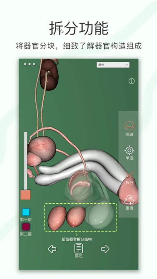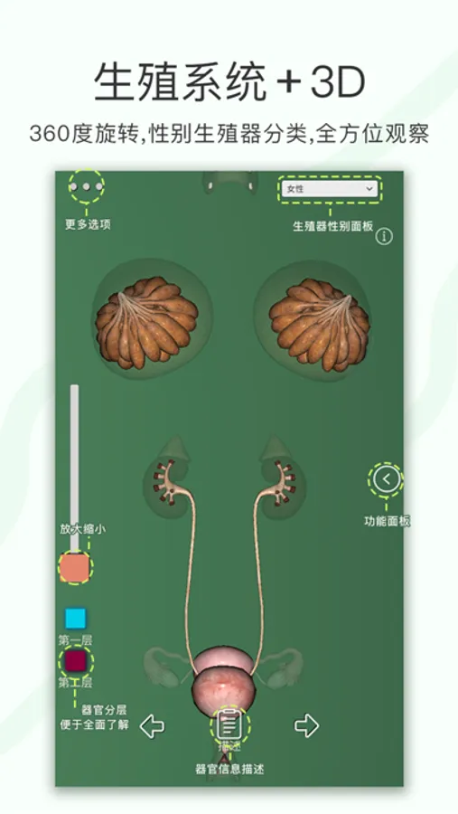 生殖系统解剖是专为医学行业打造的掌上人体解剖学习软件,详细的三维解刨图片,解释详尽。相较于局部模块版,解剖更加的详细,需要的赶紧下载吧。