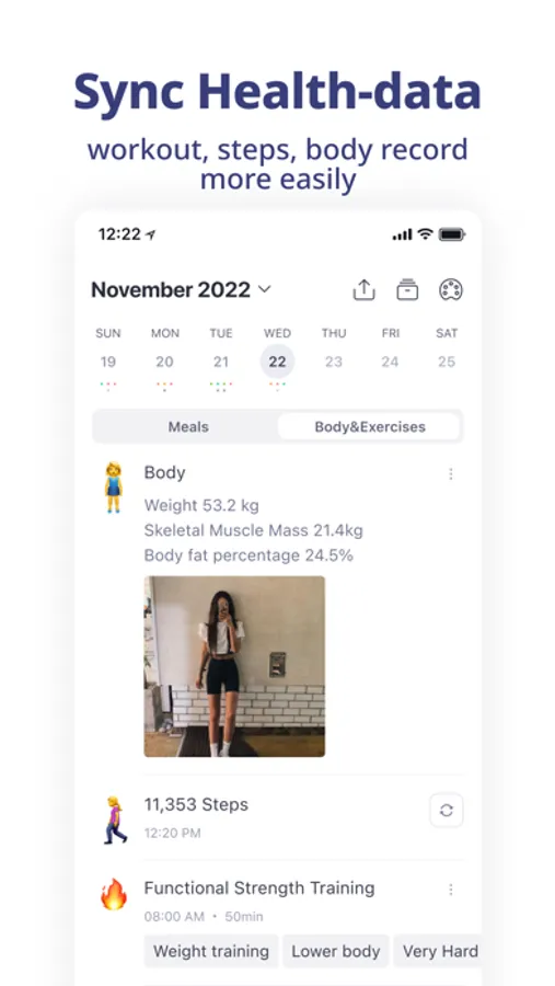 - Record your exercise and body changes easily by connecting the app to your Health data.