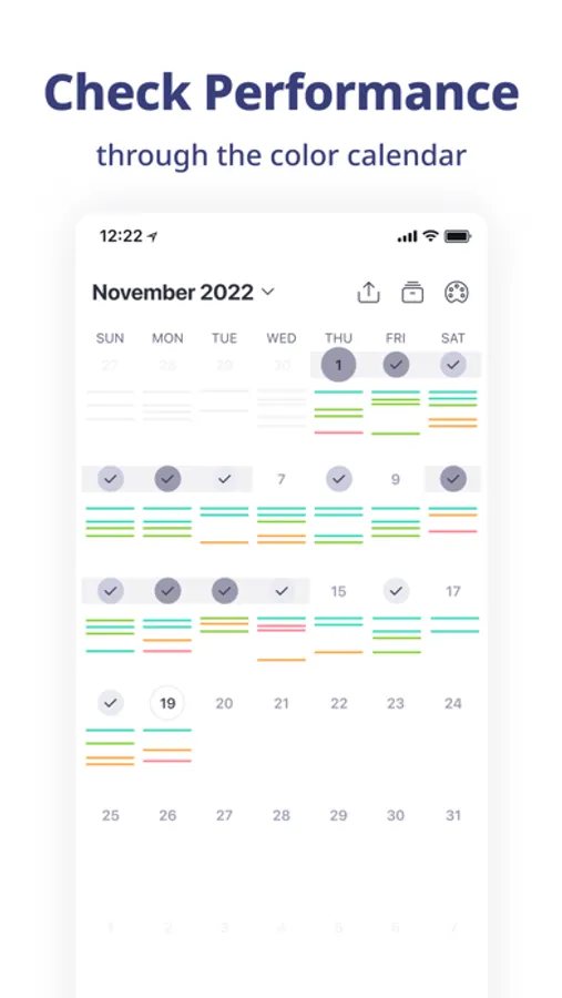 - Check your meal time and meal score in your calendar to assess your diet habits.