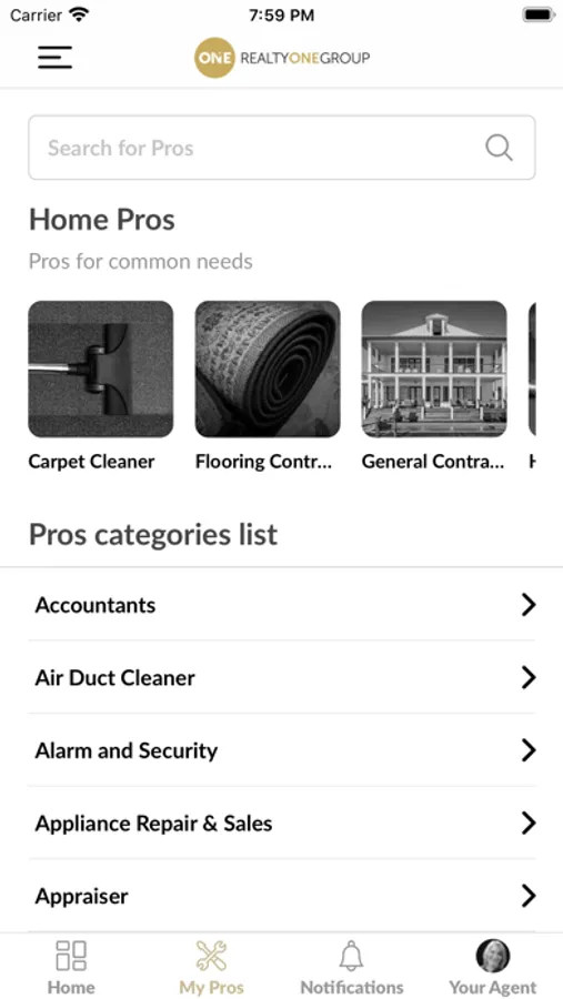 The Realty ONE Group Concierge App allows all Realty ONE Group clients to find the top rated home pros like cleaners, painters etc. recommended by your Realty ONE Group agent. You can also get timely reminders for your home such as changing your filter or checking your HVAC unit so that you don't have to remember those minute details to manage your home. Finally you can also get real time messages from your agent on all things happening in your neighbourhood