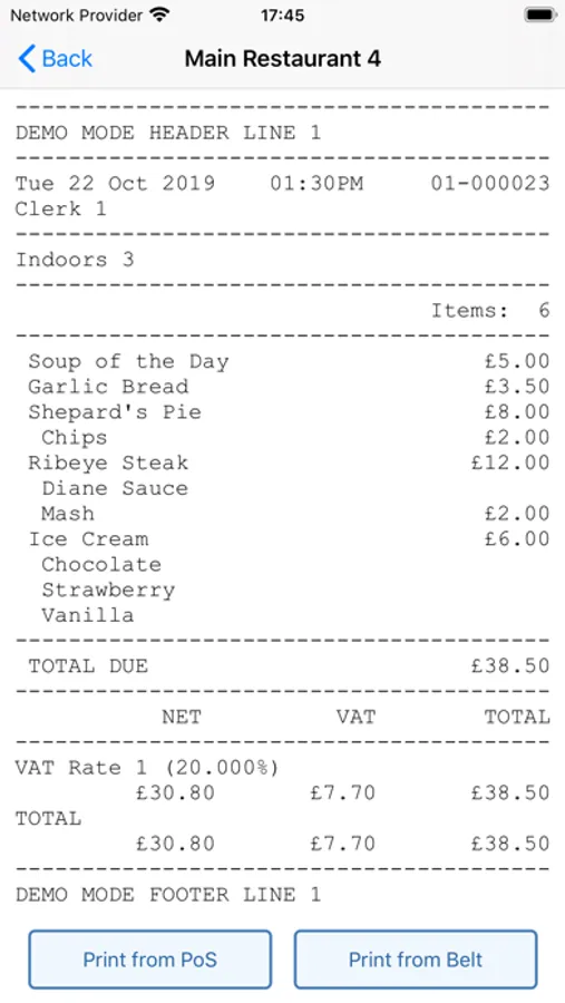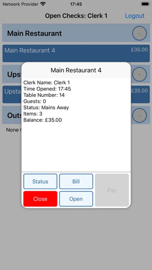 The status of a check can be updated via the app, a copy of the bill displayed and a request can be issued to the Samtouch terminal to print a copy of the check.
