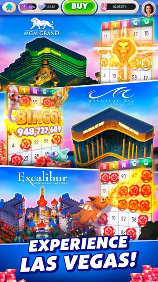 Feel the rush and sharpen your skillz in the most visually stunning bingo game in the world! With huge powerups, bingo bonuses, and massive jackpots. Have a bingo party with your friends as you daub your way through the Las Vegas strip. Play free bingo and other casino games in real Las Vegas casinos like the MGM Grand, Bellagio, Excalibur, and other iconic casinos.