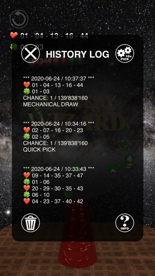 This app is an interactive random number generator based on mechanical properties. Watch your lucky numbers appear before your eyes.