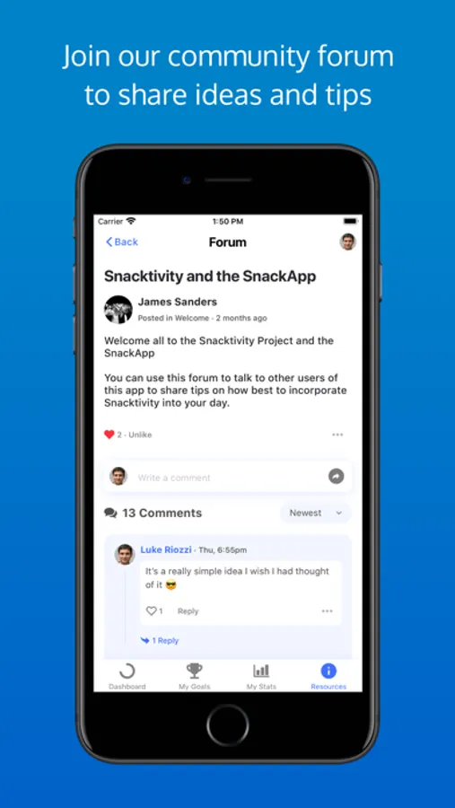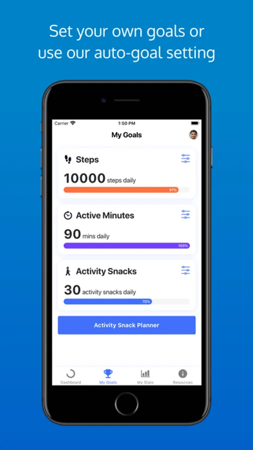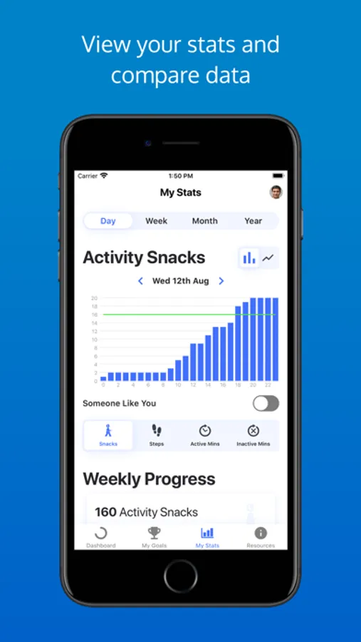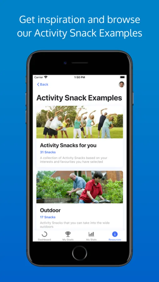 You'll be able to track your progress, set goals, plan your activity snacks into your day, get inspiration for what activity snacks you can do at home or at work, learn more about why being physically active is good for you and talk to others who are involved in Snacktivity.