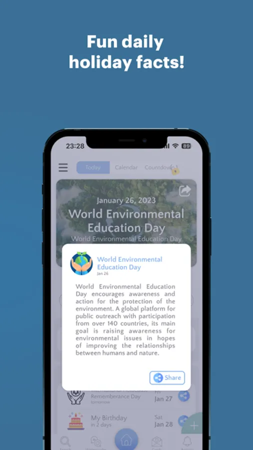3. Receive push notifications for birthday reminders, daily holidays and other special calendar events