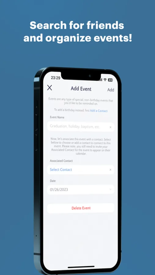 • Unlimited Storage: Add unlimited contacts, birthdays and events