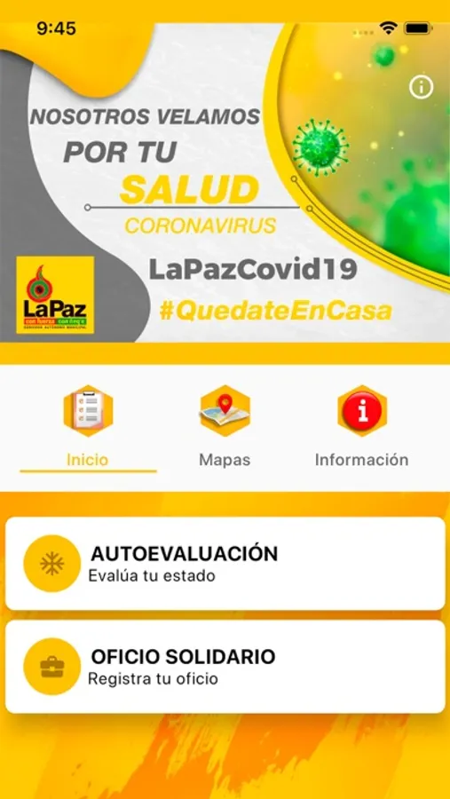 El Gobierno Autónomo Municipal de La Paz, desarrollo una aplicación móvil que sirve para identificar síntomas que están relacionados con el virus COVID-19. Su información registrada, será manejada con estricta confidencialidad el resultado de la evaluación está basado en una probabilidad calculada a partir los datos registrados. Esta aplicación puede ser utilizada por cualquier persona que radica en la Ciudad de La Paz. Esta aplicación utiliza un algoritmo automatizado, utilizado para identificar síntomas que están relacionados con el virus COVID-19. La información registrada es administrada con estricta confidencialidad. El resultado de la evaluación está basado en una probabilidad calculada a partir los datos registrados, Y POR TANTO NO SUSTITUYE EL EXAMEN DE LABORATORIO QUE DEBE SER CERTIFICADO A TRAVÉS DE MEDIOS E INSTRUMENTOS CLÍNICOS, COMO ÚNICO MECANISMO PARA ESTABLECER UN RESULTADO POSITIVO O NEGATIVO.