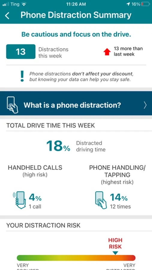 As part of our ongoing efforts to reduce distracted driving, the SmartRide Mobile App also keeps track of how often you interact with your phone while your vehicle is in motion. Phone distractions don't affect your discount, but knowing your data can help you stay safe.