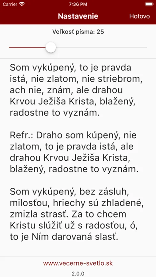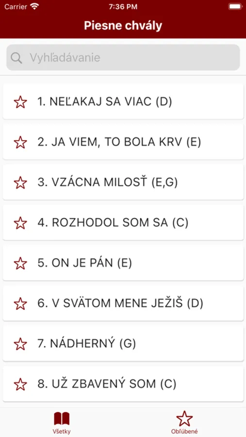 Pri každom spustení aplikácia skontroluje a stiahne aktuálnu databázu skladieb bez potreby aktualizácie celej aplikácie.