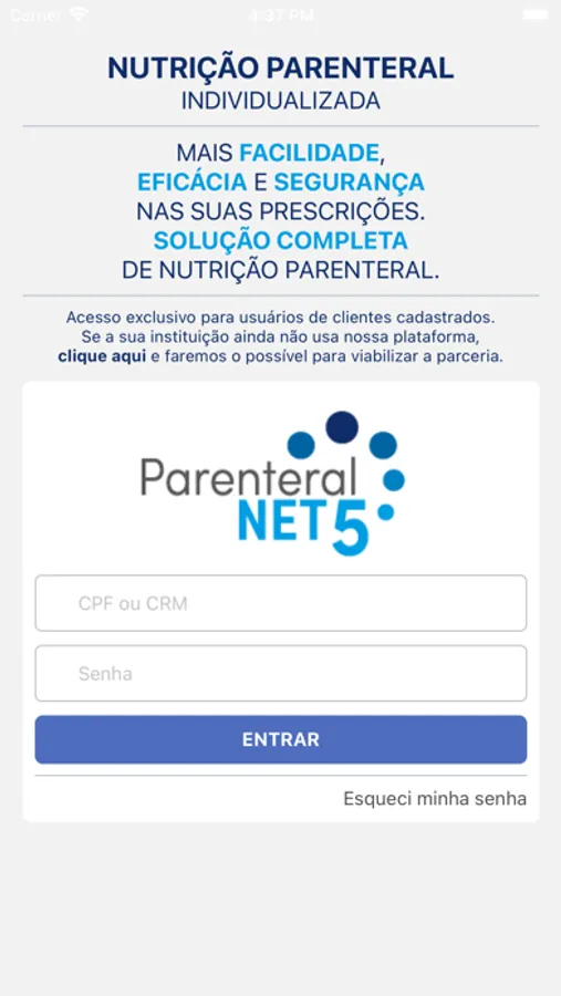 Aplicativo que permite aos médicos e/ou farmacêuticos realizarem suas prescrições de Dieta Parenteral em qualquer lugar, a qualquer momento e contando com os critérios e seguranças fornecidos a anos pela marca ParenteralNet.