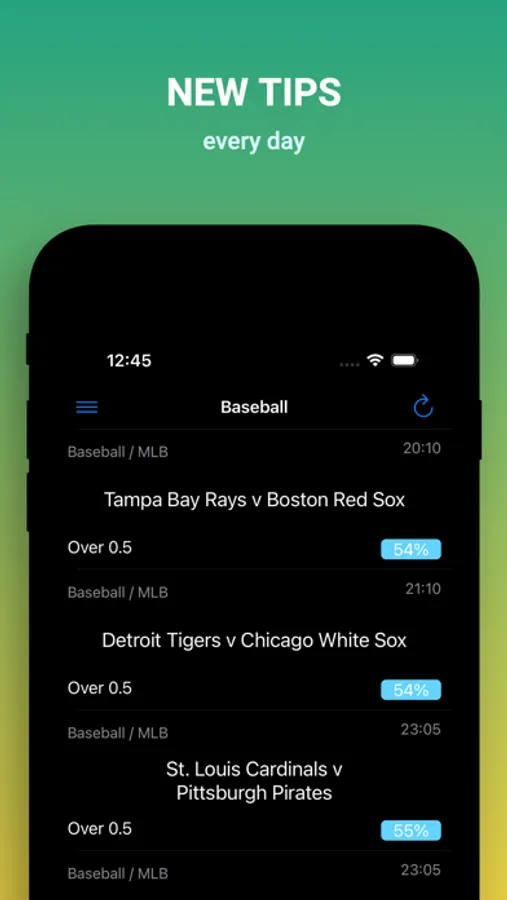 An application offering hourly tips for Baseball events from the USA and other countries.