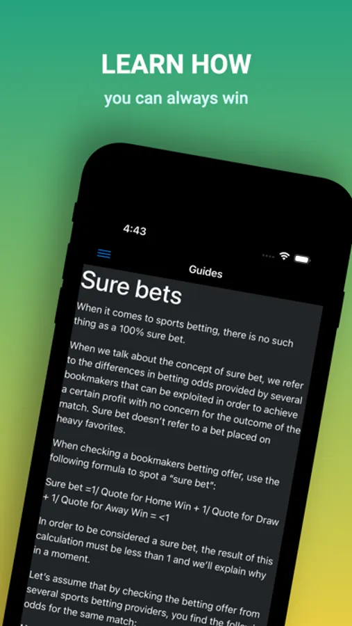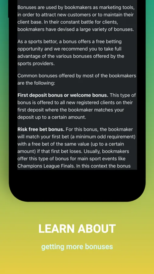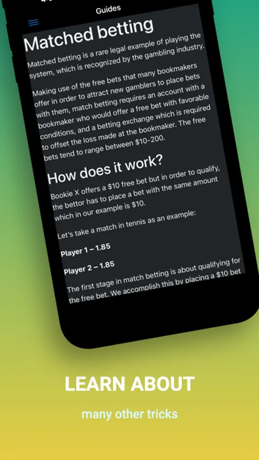 In addition to tips, this application also contains some guides for beginners in e-sports: money management, arbitrage betting, bonus management.