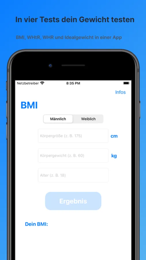 Mit unserer App hast du gleich 4 Methoden nachzurechnen was die Zahlen über dein Gewicht aussagen.