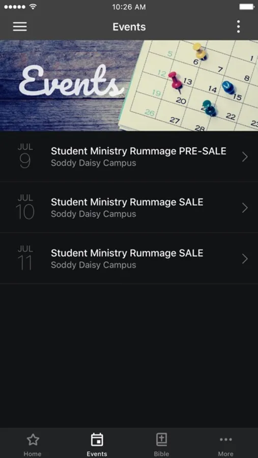 In the app, you can listen and view teachings, check out event information, view campus locations and service times, follow along with the in-app Bible or even stream the Sunday services ... all from your mobile device!
