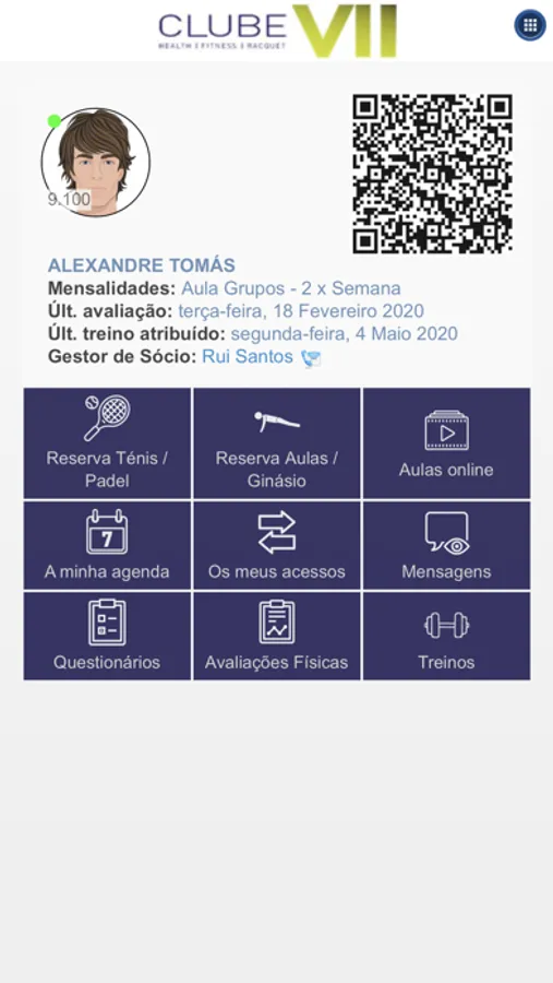 Aqui poderá reservar as suas aulas, visualizar os seus treinos e muito mais!