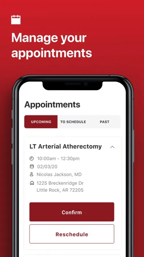 The app allows you to track and manage your entire treatment process - from your initial visit to your recovery. Directly from your mobile device, you can review your care plan, manage your existing appointments, schedule new appointments, and access and pay your bills. Additionally, the app grants you access to reliable research-backed information about your condition and sends you convenient reminders about upcoming appointments to keep you organized and healthy.