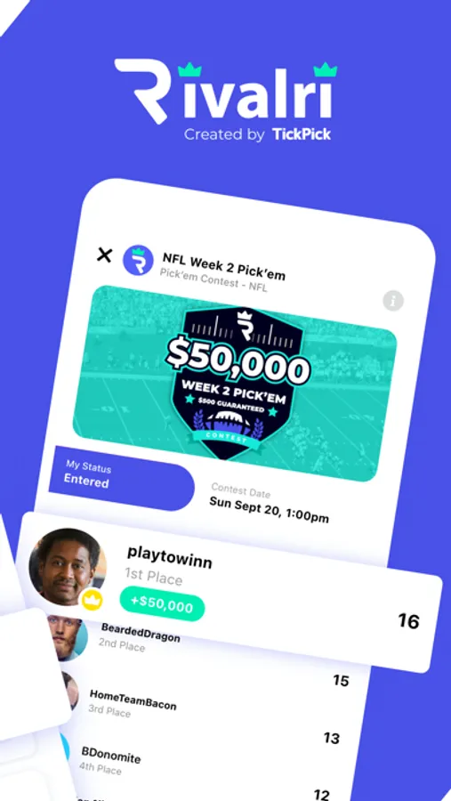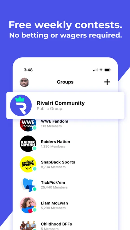 2. Create Rivalri Groups to Compete with Your Friends, Colleagues, or Fellow Fans – Build your own group and create Pick’ems and Daily Fantasy for any sport or league, or keep track of who reigns supreme in sports, video games, fitness, and more!