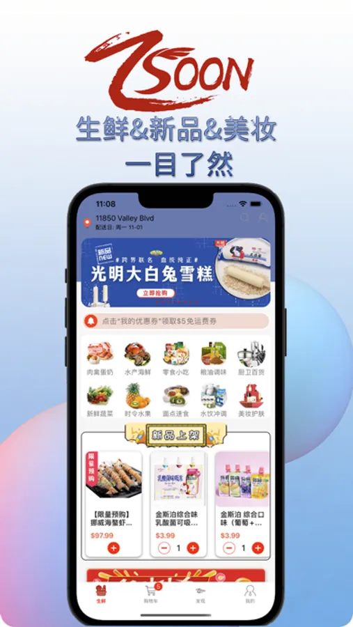 肉禽蛋类,水果生鲜,超市百货,甜点蛋糕,一应俱全。